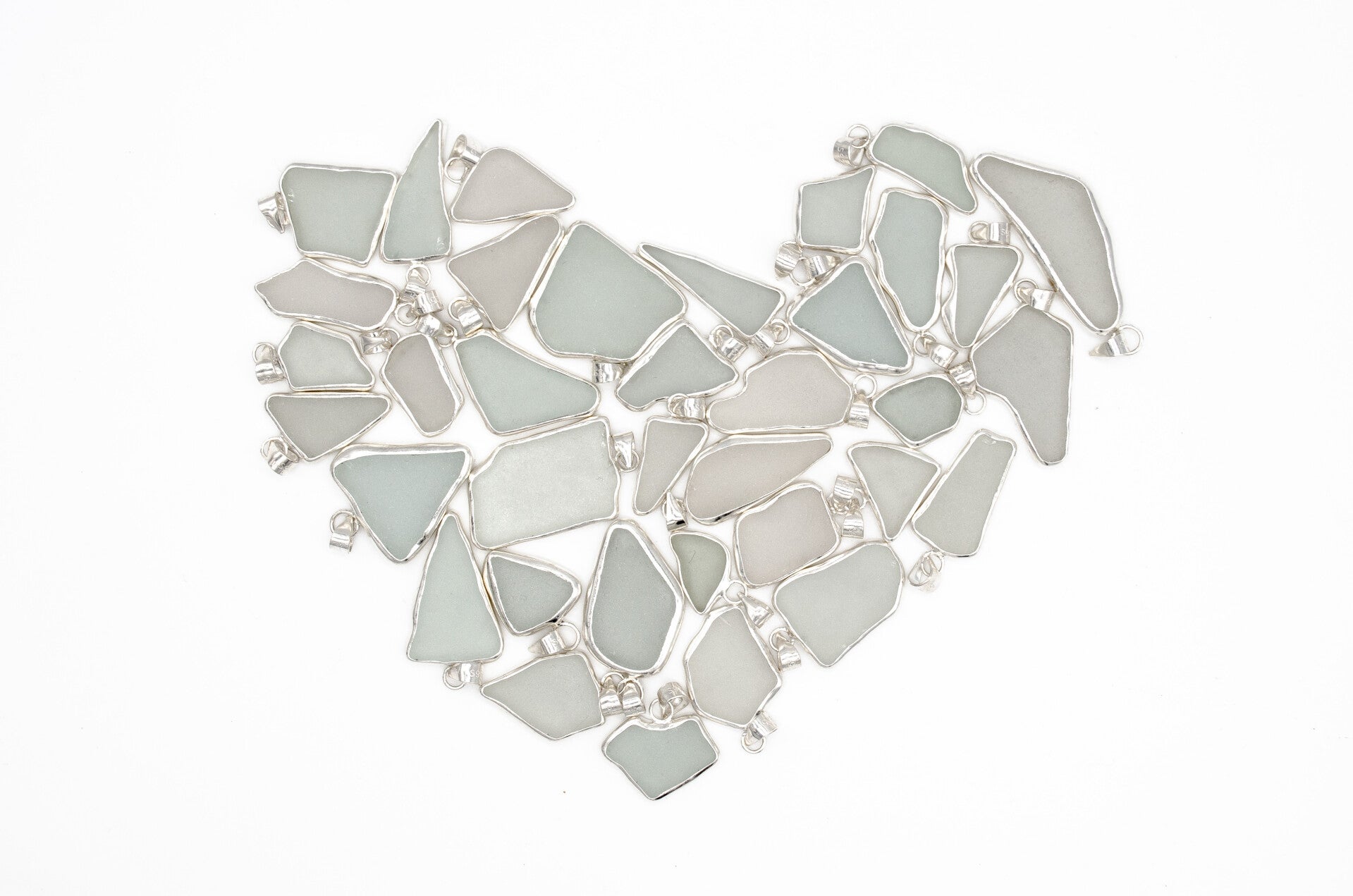 Each piece completely unique, no two pieces are alike. Each one is a fragment of history, a story told in shimmer and shape, a relic of the past, reborn by the sea.